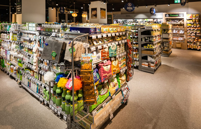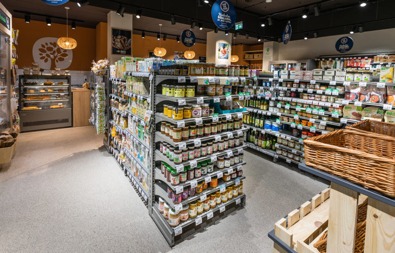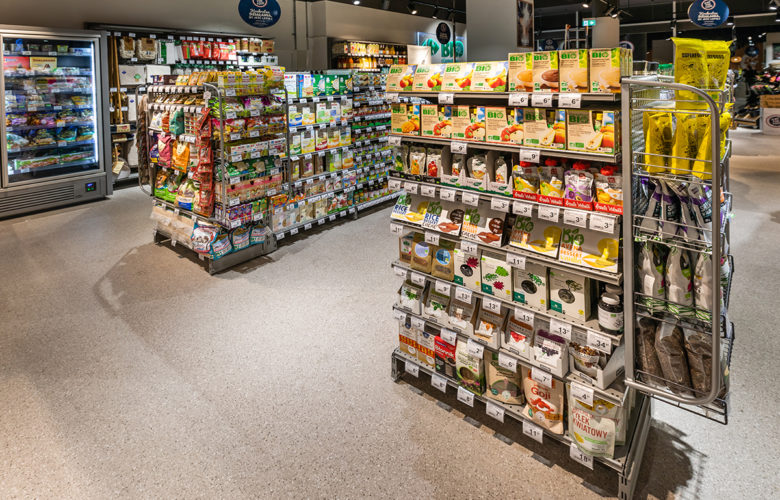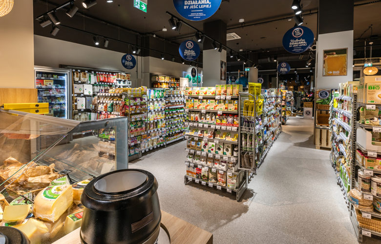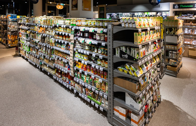 Zabudowa regałowa nowego sklepu została oparta na sprawdzonym systemie MAGO CX 25. Czterostronna perforacja profila nośnego zabudowy pozwala na optymalizację przestrzeni ekspozycyjnej. Dodatkowe ekspozytory montowane do boku słupa gondoli zwiększają szanse sprzedażowe oferowanych w nich artykułów.