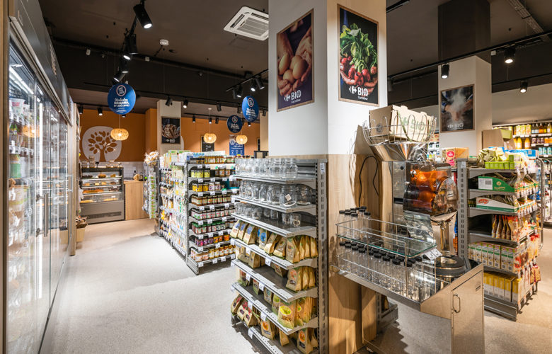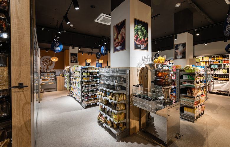 Carrefour BIO o powierzchni handlowej 153 m2 oferuje swoim klientom niemal 2,5 tys. artykułów: 250 rodzajów produktów świeżych, takich jak owoce i warzywa, mięso, ryby oraz napoje alkoholowe i wino. Na sklepowych półkach można znaleźć 250 produktów marki własnej Carrefour Bio.
