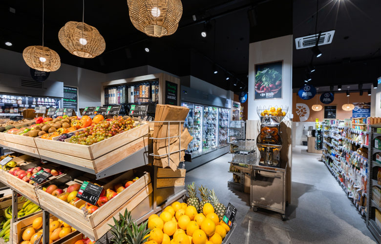 Carrefour BIO with a retail space of 153 m2 offers its customers almost 2.5 thousand. articles: 250 types of fresh products, such as fruit and vegetables, meat, fish, alcoholic beverages and wine. On the shelves you can find 250 products of Carrefour Bio private label.
