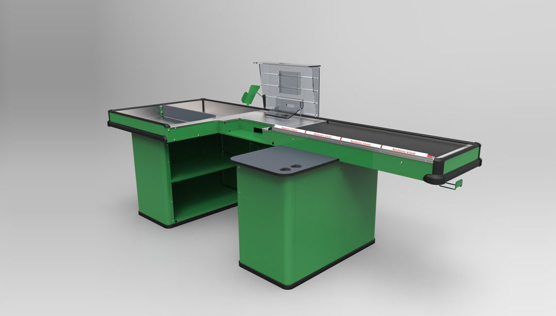 После выбора требуемой полной длины кассового бокса (от 2000 мм до 4300 мм) мы можем подобрать соответствующую длину транспортёрной ленты (от 600 мм до 2300 мм). Разные длины бокса и конвейера создают 126 возможных комбинаций. Узкая или широкая корзина, правосторонний или левосторонний бокс - это только начало конфигурации.